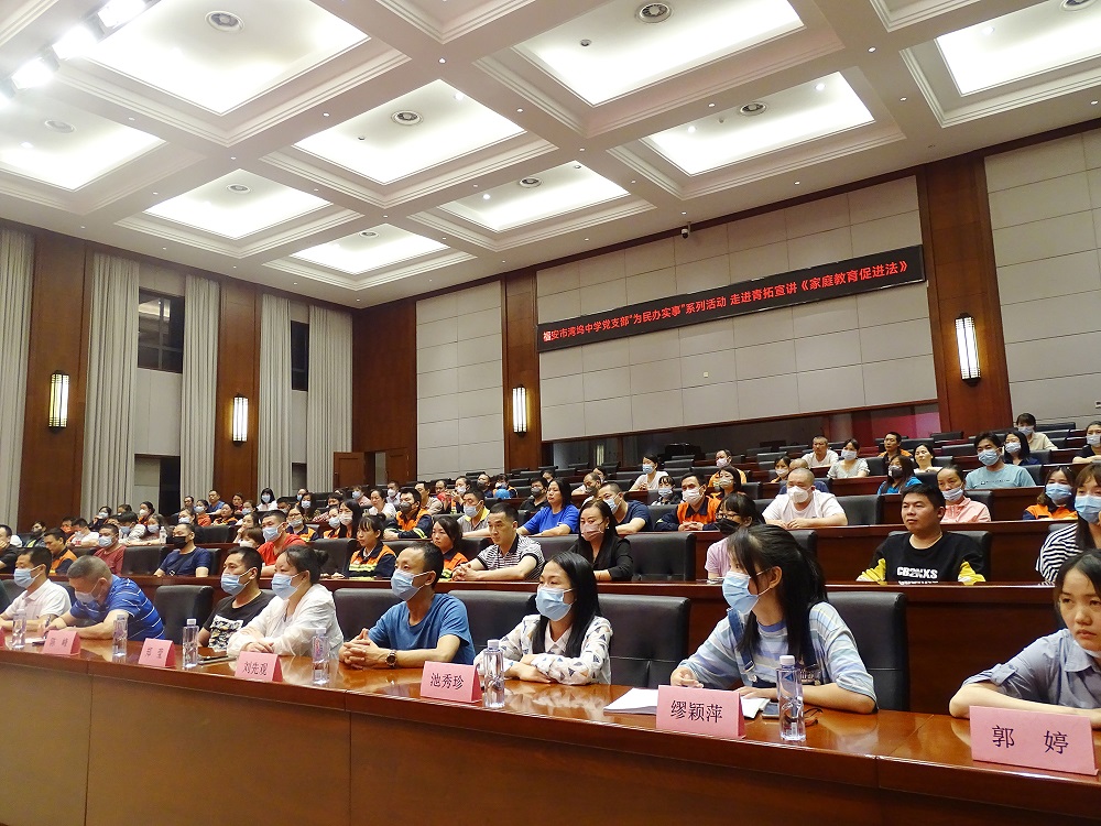 6月1日,福安市灣塢中學黨支部“為民辦實事”系列活動之走進青拓宣講《家庭教育促進法》在青拓集團有限公司報告廳舉行,寧德市人大代表兼福安市家庭教育指導協(xié)會副會長繆未雨,福安市灣塢鎮(zhèn)黨委宣傳委員陳德輝,福安市灣塢中學校長徐武,福建懷行律師事務所法律顧問林斌,青拓集團人力資源部部長劉永清及89名青拓職工家長參加了此次活動。