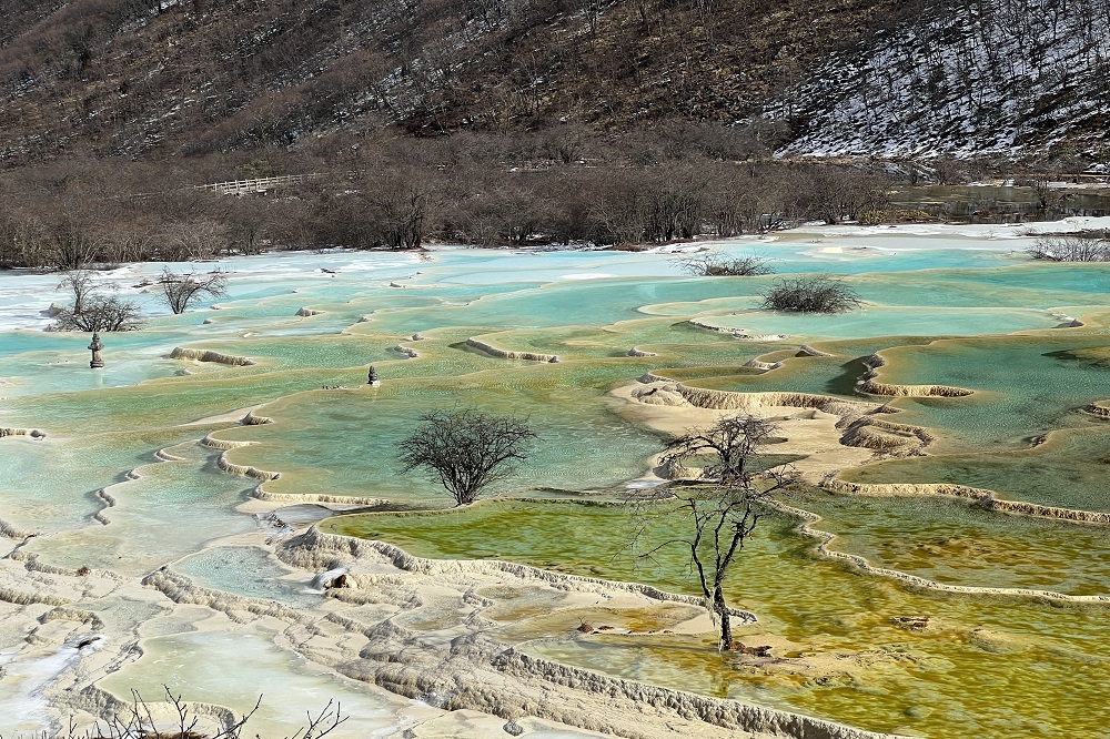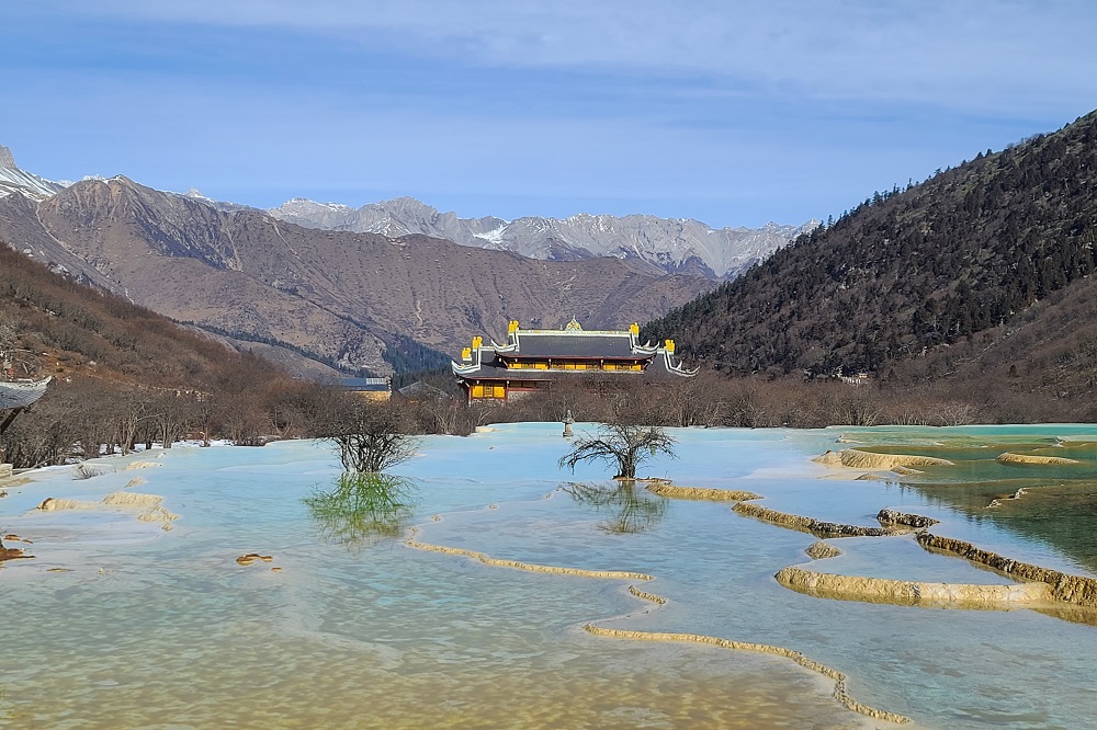 在以“彩池、瀑布、灘流、雪山、古寺”五絕聞名于世的黃龍景區(qū),層林盡染的山野,奔騰不息的瀑布,令人回味的美食,讓大家仿佛置身于童話世界。