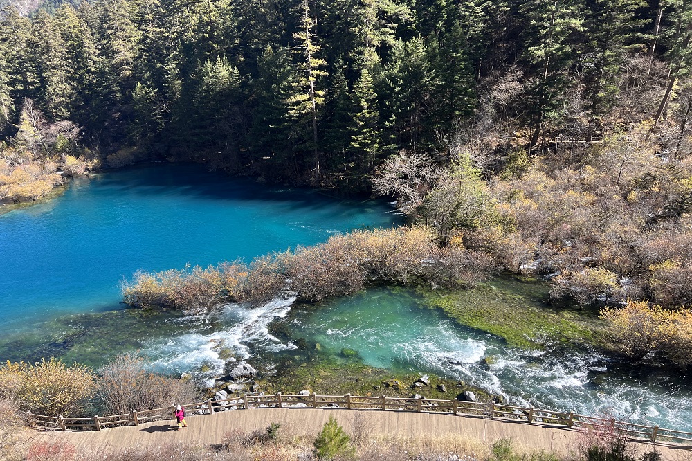 “人間仙境”九寨溝同樣美得不可方物,斑斕的樹葉、清澈的流水、慵懶的暖陽……在這寂靜的景色中,人也不知不覺沉醉其中。他們或欣賞美麗的風(fēng)景,或擺著各種pose,一起拍照合影留念,或倚靠在家人身旁談笑聊天,享受團(tuán)聚的美好時光。