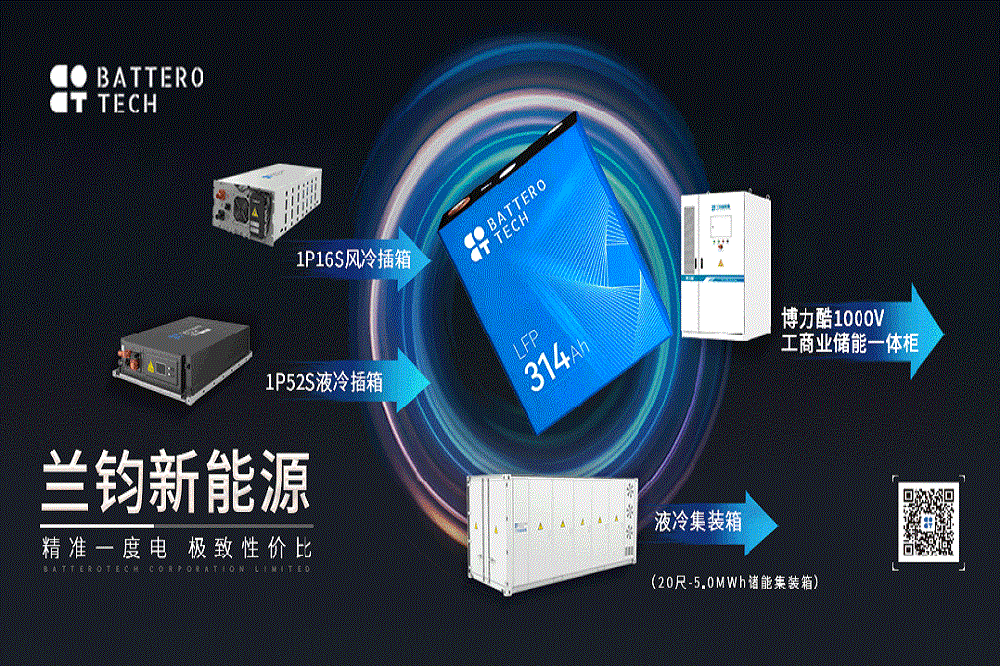 蘭鈞新能源始終堅持自主研發(fā)創(chuàng)新,追求產(chǎn)品的極致性價比,成立3年以來,在儲能領域不斷突破自我,已經(jīng)開發(fā)50Ah、72Ah、115Ah、280Ah、314Ah等多款儲能產(chǎn)品,包括1P52S的液冷標準箱、1P416S的博力酷儲能柜、20尺柜-5MWh液冷集裝箱等儲能系統(tǒng)。其中,314Ah電芯在2023年9月初已經(jīng)率先完成了首批量產(chǎn)下線。蘭鈞314Ah電芯兼具高能量、長壽命、高安全等優(yōu)點于一身,能量密度達190Wh/kg,能量效率96%、循環(huán)壽命滿足10000次以上,-30℃放電容量保持率90%以上。