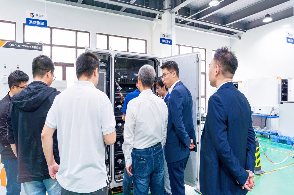 會后,相關領導參觀了開勒股份展廳與生產車間,開勒股份董事長盧小波針對開勒股份發(fā)展歷程以及HVLS工業(yè)風扇與工商業(yè)儲能業(yè)務板塊戰(zhàn)略布局進行介紹,并展示安瑞哲能源2022年于業(yè)內率先推出的全液冷工商業(yè)儲能一體機,蘭鈞新能源董事長張五堂對開勒儲能產品給予了高度肯定和積極評價,并表示對未來深入合作更有信心。