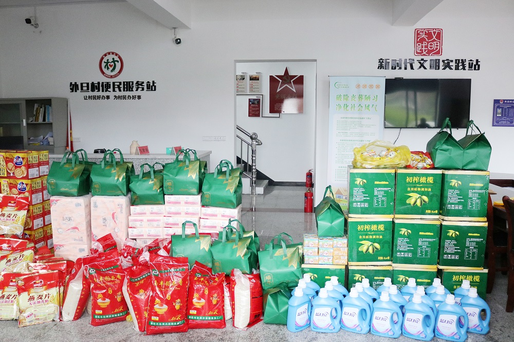 活動(dòng)開(kāi)始前,志愿者們冒雨將糧油、紙巾、洗衣液等生活必需品一件件搬上貨車(chē)運(yùn)送到外旦村便民服務(wù)站。臨近端午節(jié),志愿者送上物資的同時(shí)還送上粽子禮包,對(duì)于身體不便的老人,志愿者們將物資一一送到家,隨后與老人們親切交談,耐心詢問(wèn)他們的身體狀況和困難需求,囑咐他們多保重身體,并鼓勵(lì)他們保持樂(lè)觀心態(tài)、積極面對(duì)生活,慰問(wèn)的同時(shí)也送上了一份關(guān)懷和溫暖。