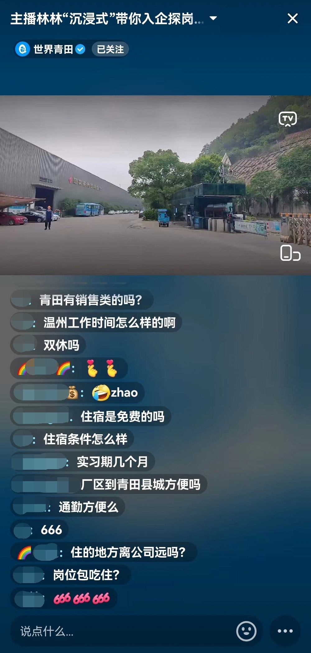 6月27日,青山鋼管有限公司聯(lián)合青田縣人社局打破傳統(tǒng)招聘方式,嘗試時(shí)下最新潮的“探店直播”形式,帶領(lǐng)求職者深入公司內(nèi)部,打卡青田廠區(qū),沉浸式體驗(yàn)公司的工作環(huán)境與氛圍。