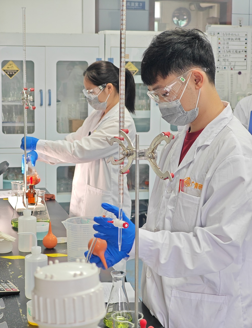 比賽分為理論考核與實操比拼兩大環(huán)節(jié)。理論考核不僅考驗了選手們對化學(xué)基礎(chǔ)理論知識的掌握程度,還融入了最新的科研成果與行業(yè)動態(tài),讓理論與實踐緊密結(jié)合。實操比拼考查天平稱量、樣品消解、移液操作、滴定操作及終點辨別等環(huán)節(jié)。對未知濃度的樣品進(jìn)行準(zhǔn)確測定,誤差需控制在毫克級別以內(nèi),這不僅是對技巧的挑戰(zhàn),更是對心理素質(zhì)的考驗。參賽選手神情專注,手法嫻熟,大家通過比賽互相切磋,共同進(jìn)步,真正達(dá)到以賽促學(xué)、以賽促訓(xùn)的目的,展現(xiàn)出良好的精神狀態(tài)和競技水平。