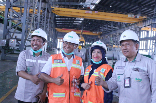 相關(guān)人員陪同Panut Mulyono一行參觀了園區(qū)的煉鋼、熱軋、冷軋廠區(qū),并詳細(xì)介紹了RKEF+AOD生產(chǎn)工藝流程以及相關(guān)配套設(shè)施。Panut Mulyono對園區(qū)先進(jìn)的不銹鋼生產(chǎn)工藝和巨大的生產(chǎn)規(guī)模大加贊賞。