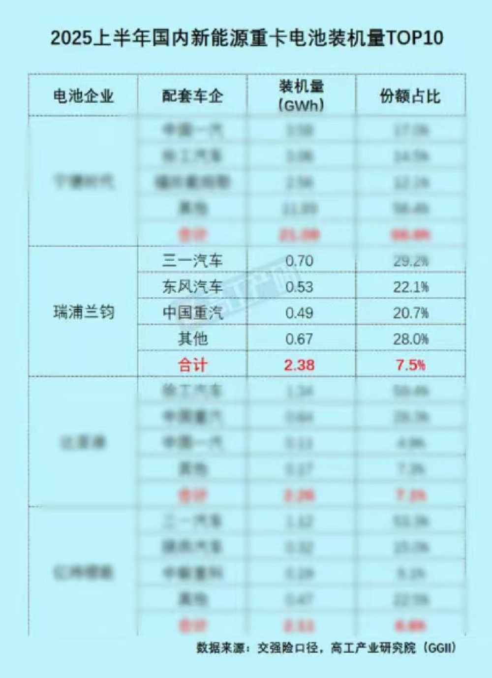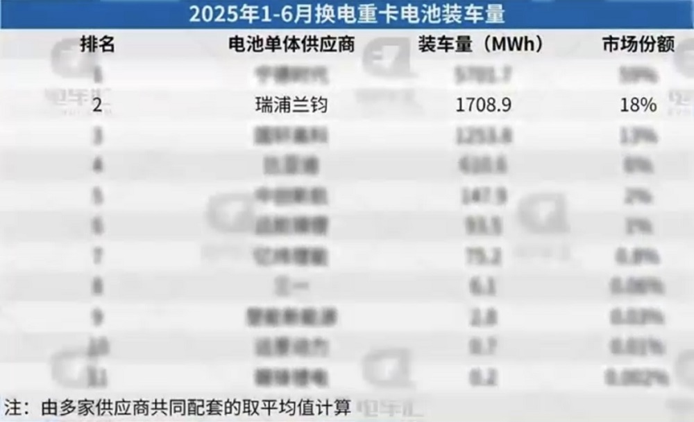2025年上半年,瑞浦蘭鈞能源股份有限公司新能源重卡電池市占率達(dá)7.5%,換電重卡電池市占率18%,同比增長高達(dá)809%。兩項(xiàng)數(shù)據(jù)雙雙位列全國第二,充分展現(xiàn)出公司在重卡市場的強(qiáng)勁穿透力與產(chǎn)品競爭力。