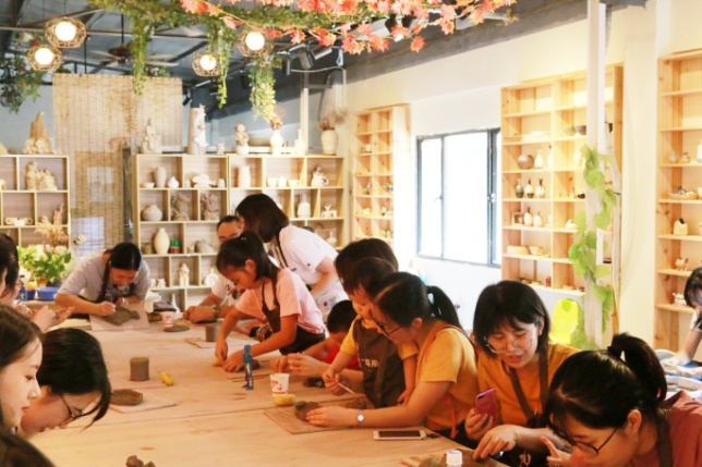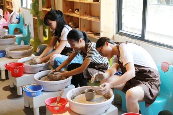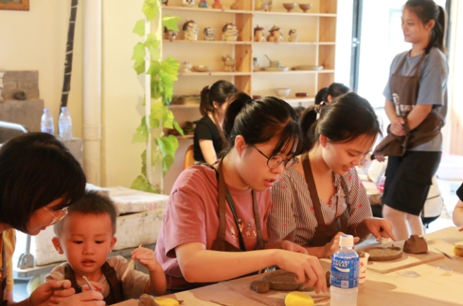 14時(shí),活動(dòng)正式開(kāi)始,包含拉胚和捏塑兩項(xiàng)陶藝體驗(yàn)項(xiàng)目。陶藝?yán)蠋熓紫冉o每人發(fā)了一塊陶泥,講解了手工揉泥相關(guān)知識(shí)與要求、簡(jiǎn)單拉胚的技巧和注意事項(xiàng)以及相關(guān)工具的使用方法,最后簡(jiǎn)單示范了制作步驟流程??此坪?jiǎn)單的陶藝,其實(shí)有著復(fù)雜的過(guò)程,制作陶藝要求有充足的耐心,還要講究技術(shù)與細(xì)心,根據(jù)老師的指導(dǎo),大家充分發(fā)揮想象力和創(chuàng)造力,制作出一個(gè)個(gè)屬于自己的陶藝作品。