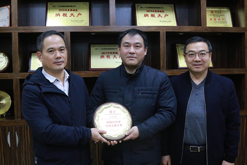 1月8日上午,佛山禪城區(qū)經(jīng)濟和科技促進局局長李凱一行到訪吉瑞公司,向吉瑞公司頒發(fā)“2019年度禪城區(qū)經(jīng)濟突出貢獻企業(yè)”獎牌,公司副總裁張勝、行政副總經(jīng)理戴學(xué)軍給予了熱情接待。