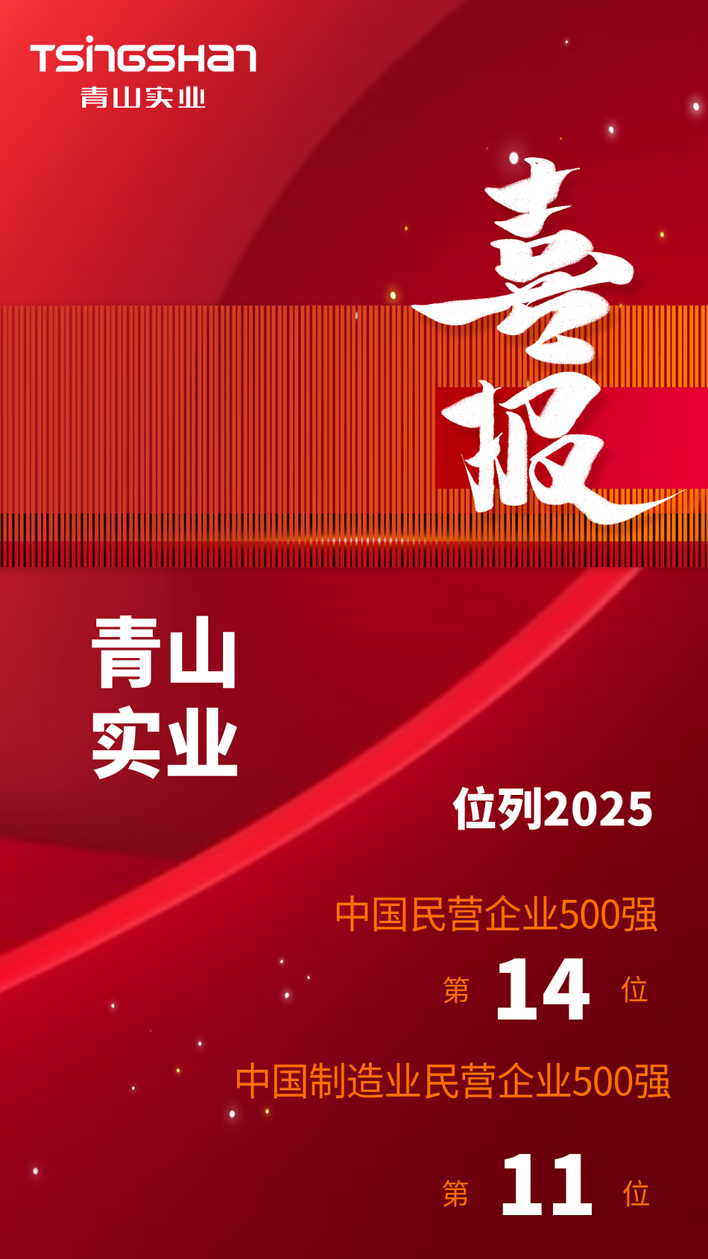 喜報丨青山實業(yè)位列2025中國民營企業(yè)500強第14位、中國制造業(yè)民營企業(yè)500強第11位