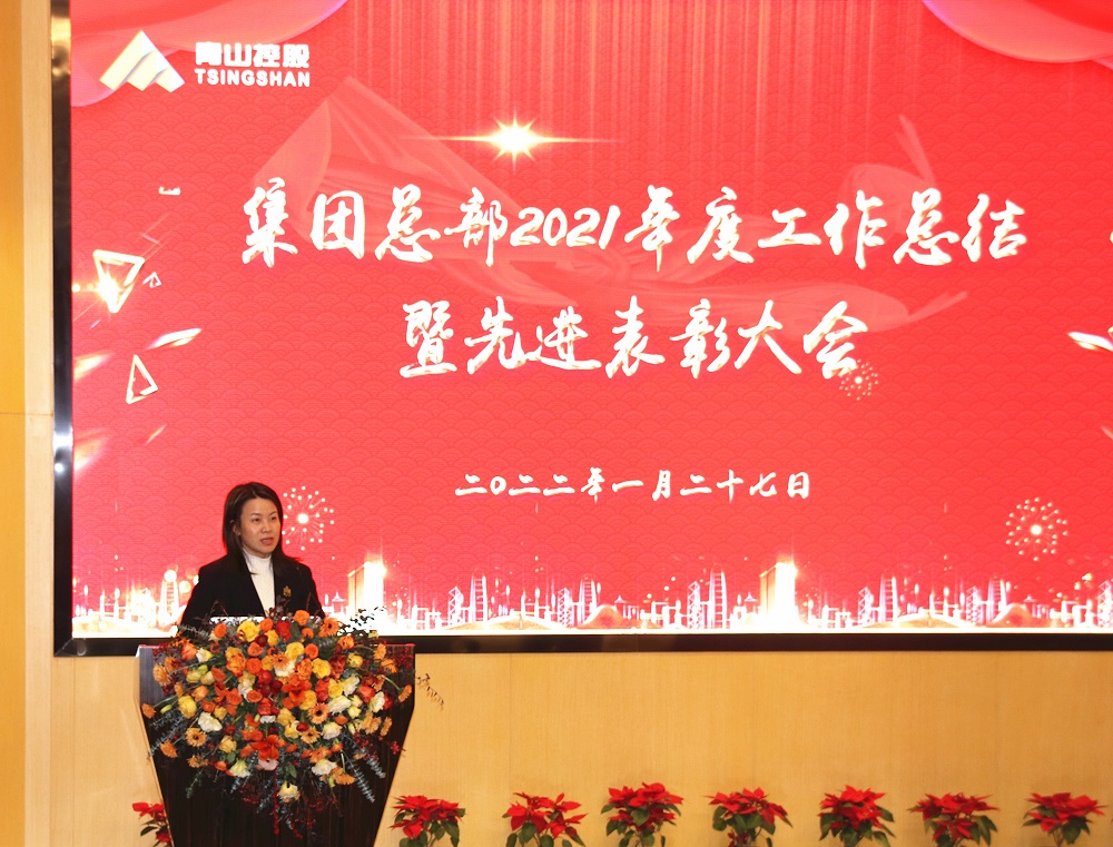 1月27日14時(shí),青山控股集團(tuán)有限公司2021年度工作總結(jié)暨先進(jìn)表彰大會(huì)在青山總部大樓2樓報(bào)告廳順利召開。集團(tuán)總裁孫建芬、各部門負(fù)責(zé)人、業(yè)務(wù)主管及2021年度先進(jìn)集體代表、先進(jìn)個(gè)人等近40人參加了會(huì)議。