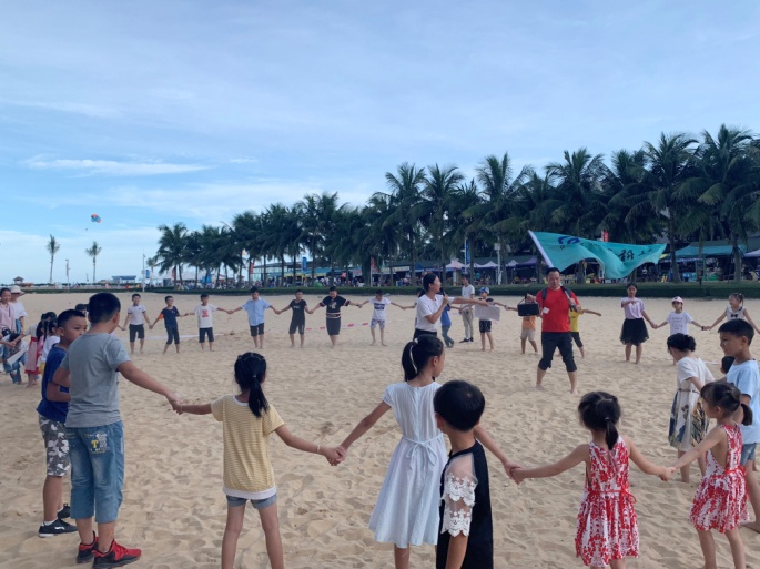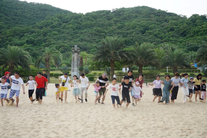 在隨后開(kāi)展的沙灘游戲中,家長(zhǎng)和孩子們樂(lè)開(kāi)了花,歡笑聲、吶喊聲在海邊回響。兩人三足親子活動(dòng)中,家長(zhǎng)和孩子團(tuán)結(jié)協(xié)作向終點(diǎn)前進(jìn),有效增進(jìn)了孩子與家長(zhǎng)之間的感情。