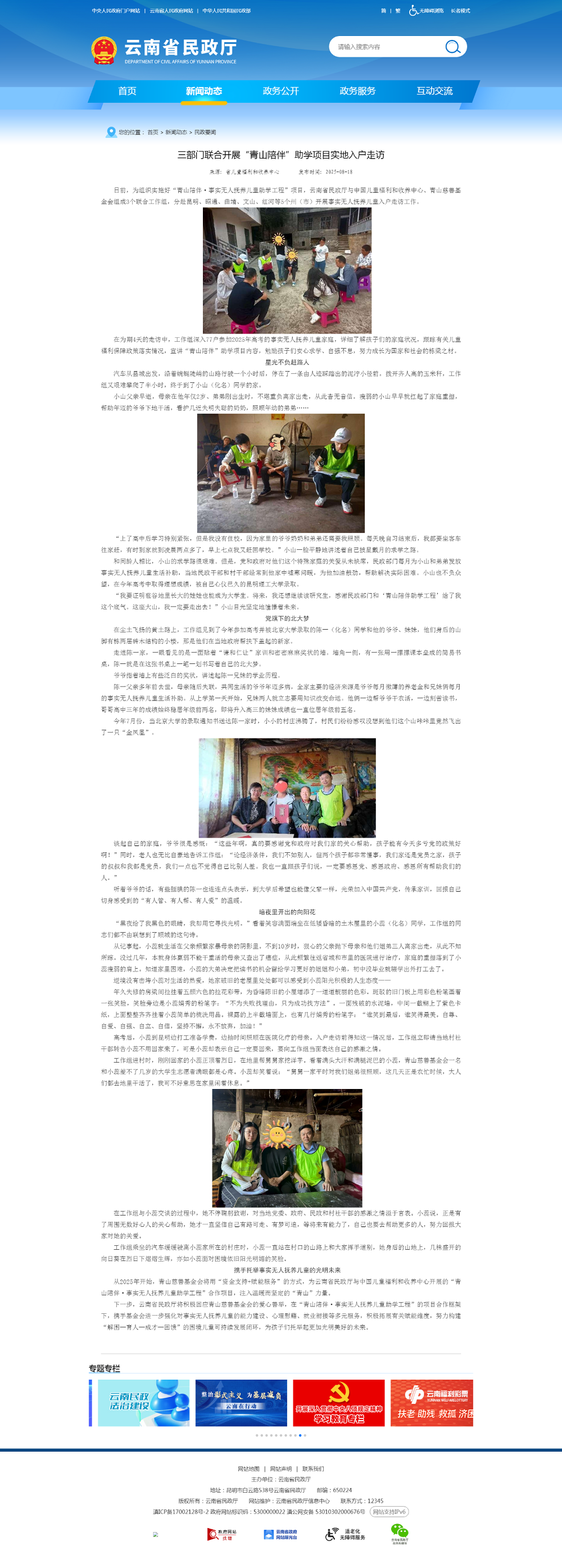 日前,為組織實(shí)施好“青山陪伴·事實(shí)無人撫養(yǎng)兒童助學(xué)工程”項(xiàng)目,云南省民政廳與中國(guó)兒童福利和收養(yǎng)中心、青山慈善基金會(huì)組成3個(gè)聯(lián)合工作組,分赴昆明、昭通、曲靖、文山、紅河等5個(gè)州(市)開展事實(shí)無人撫養(yǎng)兒童入戶走訪工作。