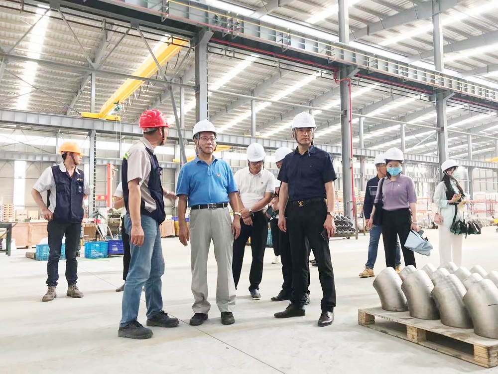 指導(dǎo)組一行到園區(qū)觀景臺(tái)參觀了園區(qū)整體建設(shè)情況。隨后,在李啟光的帶領(lǐng)下,現(xiàn)場(chǎng)考察了浙江青山鋼管有限公司焊管車(chē)間,了解企業(yè)工藝和設(shè)備情況。劉學(xué)忠仔細(xì)聆聽(tīng)關(guān)于生產(chǎn)工藝流程及流水線(xiàn)設(shè)備的介紹后,對(duì)于園區(qū)投產(chǎn)企業(yè)的建設(shè)進(jìn)度及高附加值產(chǎn)品的生產(chǎn)把控表示充分肯定。