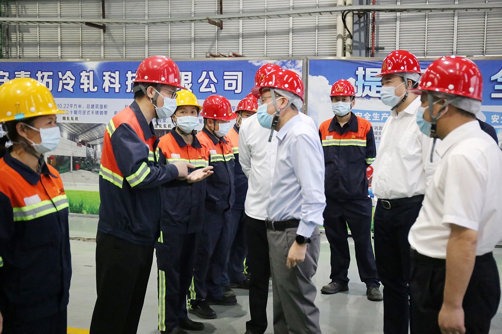 張永寧特別詢問(wèn)了周小明如何解決400系連鑄寬度控制難點(diǎn)這一世界難題,對(duì)他長(zhǎng)期以來(lái)不忘初心、堅(jiān)守一線、潛心科研,在不銹鋼領(lǐng)域取得優(yōu)異的成績(jī)給予充分肯定和鼓勵(lì),并對(duì)青拓集團(tuán)在疫情期間抓好疫情防控、安全有序生產(chǎn)、全力保障企業(yè)正常生產(chǎn)運(yùn)行表示稱贊。