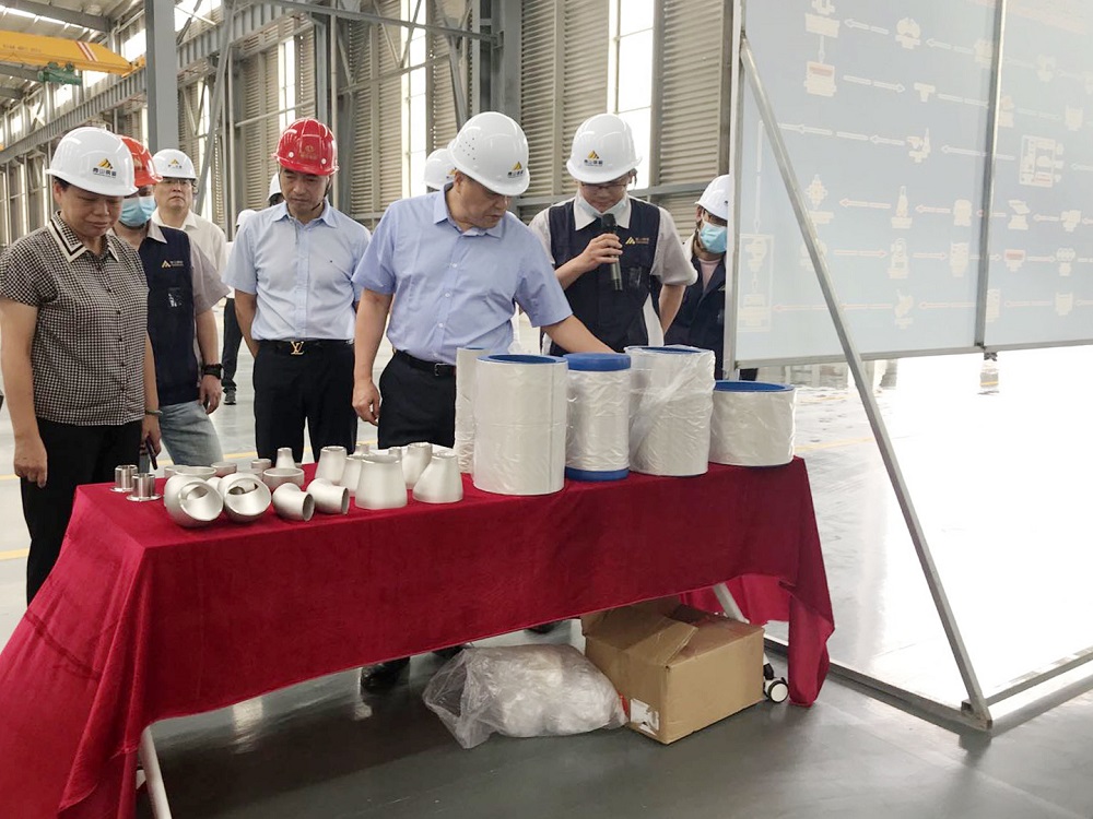 來到焊管焊縫檢測區(qū)時,曾智勇對焊縫質(zhì)量檢測十分感興趣,特意進行了詳細詢問。隨后,曾智勇還參觀了管件車間。