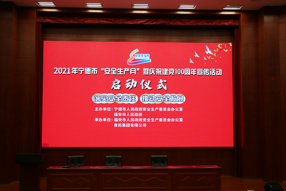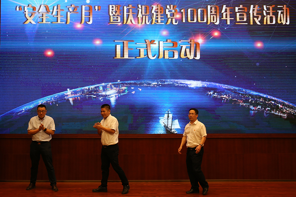 最后,雷輝、崔向新、周玉泉共同按下啟動按鈕,至此2021年寧德市“安全生產(chǎn)月”暨慶祝建黨100周年宣傳活動正式啟動,同時也拉開了青拓集團開展“安全生產(chǎn)月”活動的序幕。