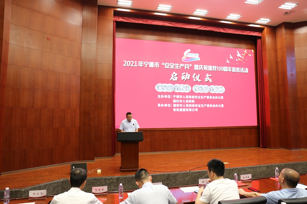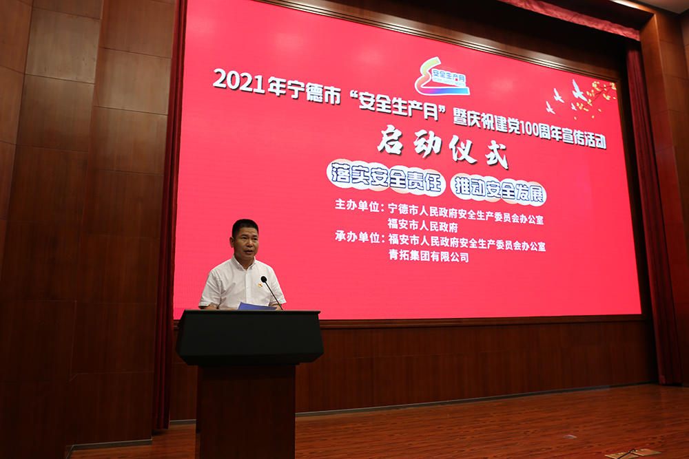 今年6月是全國第20個安全生產(chǎn)活動月,為深入貫徹落實習近平總書記關(guān)于安全生產(chǎn)的重要論述,有效防范遏制各類安全事故的發(fā)生,為慶祝建黨一百周年創(chuàng)造良好的安全環(huán)境,根據(jù)寧德市“安全生產(chǎn)月”活動組委會安排,6月9日,在青拓集團有限公司舉辦了2021年寧德市“安全生產(chǎn)月”啟動儀式暨慶祝建黨100周年宣傳活動。寧德市應(yīng)急管理局黨委委員、總工程師雷輝,福安市副市長崔向新,青拓集團副總裁周玉泉,寧德市、福安市應(yīng)急管理局有關(guān)人員,青拓集團各子公司代表共計近150人參加了啟動儀式。