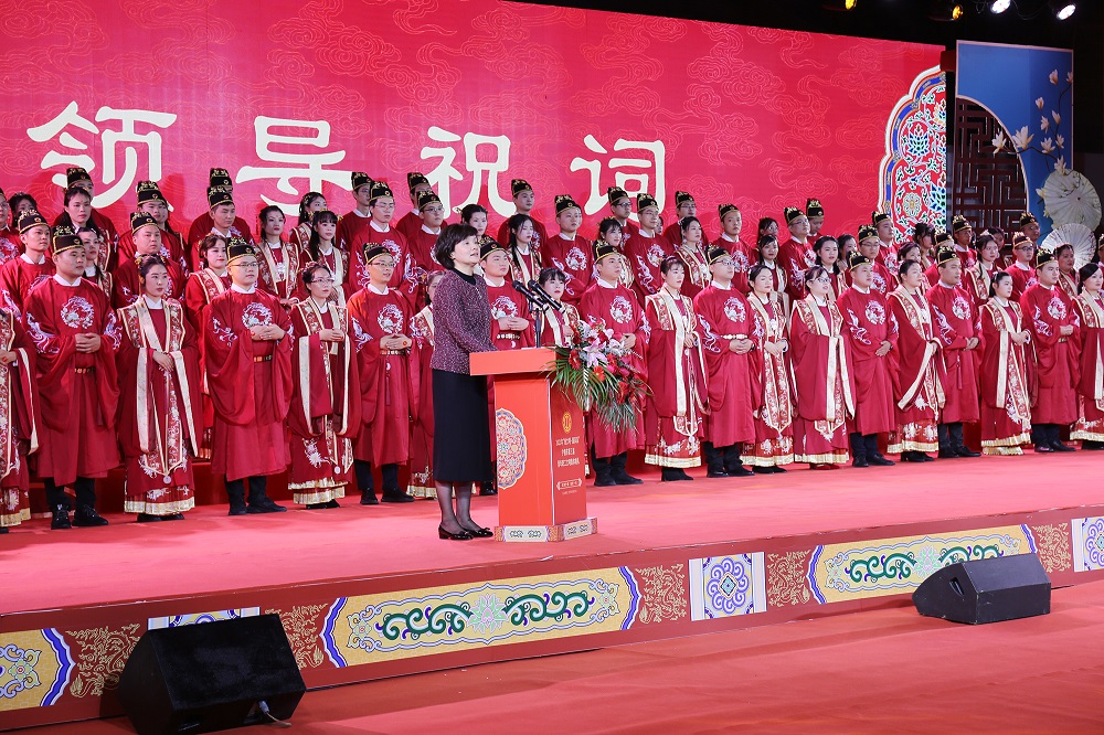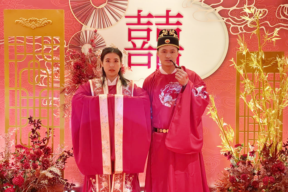 伴隨著錯(cuò)落有致的鼓點(diǎn),婚禮在開場舞表演后正式開始。