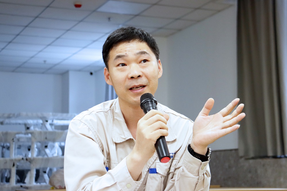電極制造的沈燁現(xiàn)場講解了一些他在“師帶徒”過程中所總結(jié)的經(jīng)驗(yàn),他表示:基礎(chǔ)的普及對于新手非常重要,師傅要給徒弟講解清楚現(xiàn)場生產(chǎn)組合的生態(tài)以及整個(gè)生產(chǎn)過程如何運(yùn)行的原理;帶教過程中對于情緒的管理非常重要,不能帶入個(gè)人情緒;帶教需要形成清晰的教學(xué)框架,進(jìn)行系統(tǒng)式的教學(xué),并配合臨時(shí)的知識抽查。