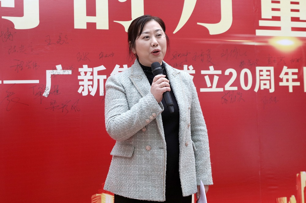 公司黨委副書記、工會(huì)主席王大慶與大家分享了她在廣新集團(tuán)的成長(zhǎng)歷程和感受。她說到:二十年來,廣新發(fā)生了翻天覆地的變化,取得了一個(gè)又一個(gè)輝煌的成就,但一直不變的是我們的初心、堅(jiān)持和信念。