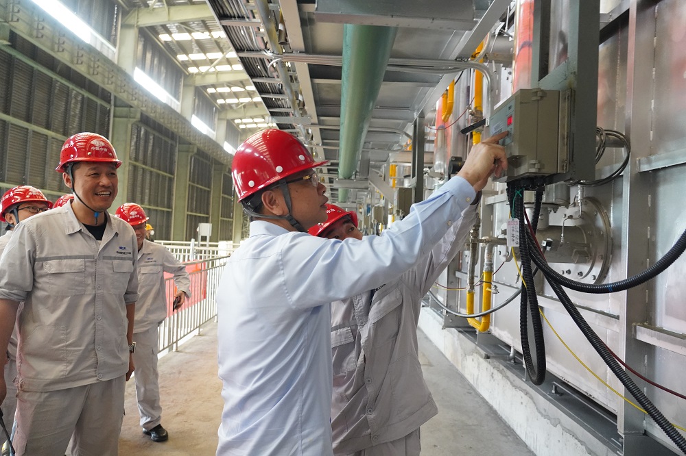 公司領(lǐng)導(dǎo)為3#線退火爐啟動(dòng)點(diǎn)火按鈕