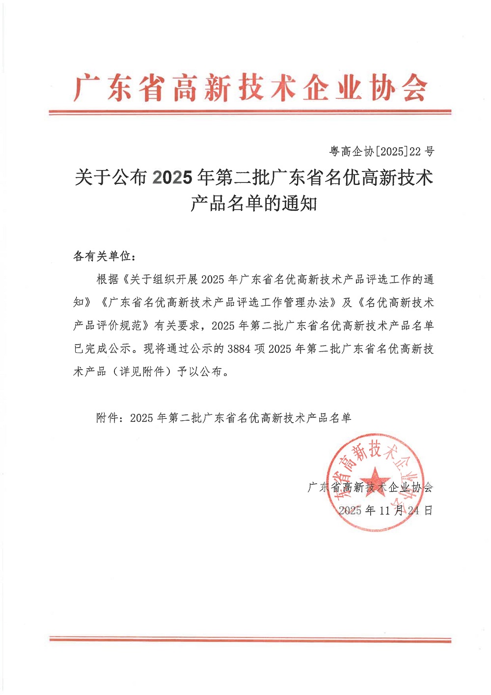 三項產(chǎn)品成功入選2025年第二批廣東省名優(yōu)高新技術產(chǎn)品名單