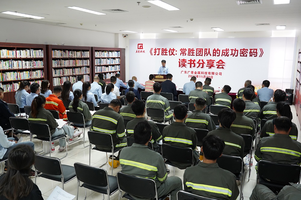 為加快打造公司特色企業(yè)文化,增強廣大員工的凝聚力、執(zhí)行力、創(chuàng)新力、戰(zhàn)斗力,進一步推動公司高質(zhì)量發(fā)展,11月20日,廣東廣青金屬科技有限公司在綜合樓圖書館舉辦了《打勝仗:常勝團隊的成功密碼》讀書分享會活動。公司黨委書記、董事長王駿,黨委班子成員、支部書記、黨員代表和干部職工代表共70多人參加了活動。