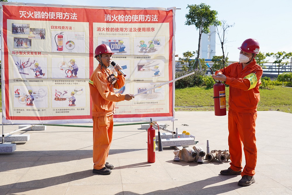 演練中,專職消防隊(duì)指導(dǎo)員梁正芳講解了消防安全知識(shí)、火災(zāi)預(yù)防措施以及滅火器的操作方法等消防常識(shí),并由兼職消防隊(duì)員配合示范滅火器材的使用方法,指導(dǎo)員工在面對(duì)火災(zāi)時(shí)一定要冷靜、不慌亂,采取正確的自救和求救措施。