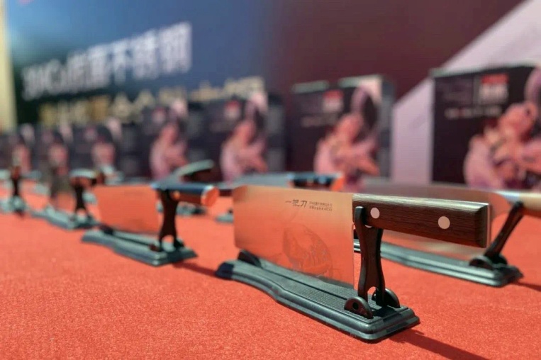 廣青科技300系抗菌不銹鋼量產(chǎn)后,已批量用在餐廚具、醫(yī)療衛(wèi)生等領(lǐng)域,得到客戶廣泛認(rèn)可。5月底,在市科技局的指導(dǎo)下,廣青科技與凱利德達(dá)成合作意向,通過凱利德研發(fā)團(tuán)隊(duì)潛心研發(fā),先后攻破了300系不銹鋼做刀的58個(gè)技術(shù)難關(guān),結(jié)合廣青科技304抗菌不銹鋼材料和刀剪研究院的粉末激光熔覆技術(shù)兩大科技創(chuàng)新成果,成功開發(fā)出304Cu抗菌不銹鋼刀具。相比傳統(tǒng)300系不銹鋼,其加入3%以上的銅,銅離子有著非常優(yōu)秀的抗菌和殺毒功效,使用健康安全,相比傳統(tǒng)馬氏體刀具,因含有8%以上的Ni以及18%以上的Cr,奧氏體基材耐蝕性提高,加之激光熔覆刃口耐磨鋒利度高,綜合性能遠(yuǎn)超過傳統(tǒng)馬氏體鋼刀具。凱利德開發(fā)的300系抗菌刀產(chǎn)品一經(jīng)推出就受到客戶的高度認(rèn)可和廣泛好評(píng),廣青科技內(nèi)部組織員工預(yù)定,盡管要求全額付款且等待一個(gè)半月,但預(yù)定非?;鸨?,首批就達(dá)到了2千多套。