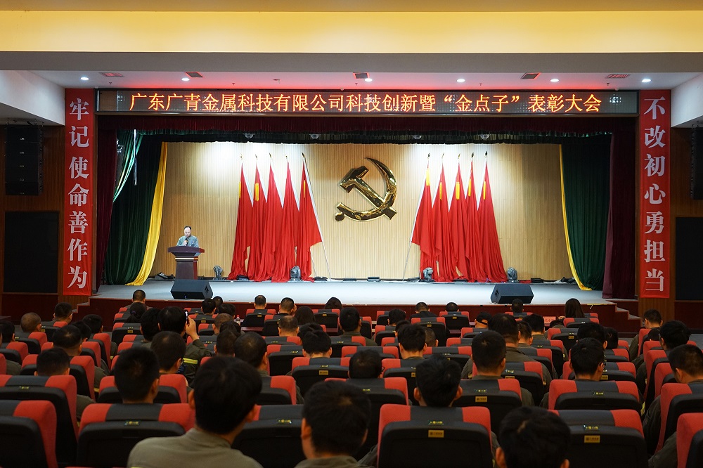 1月6日,廣東廣青金屬科技有限公司召開(kāi)了科技創(chuàng)新暨“金點(diǎn)子”頒獎(jiǎng)大會(huì)。公司領(lǐng)導(dǎo)、各部門(mén)(廠)負(fù)責(zé)人、獲獎(jiǎng)?wù)咭约皢T工代表共100多人參加了會(huì)議。