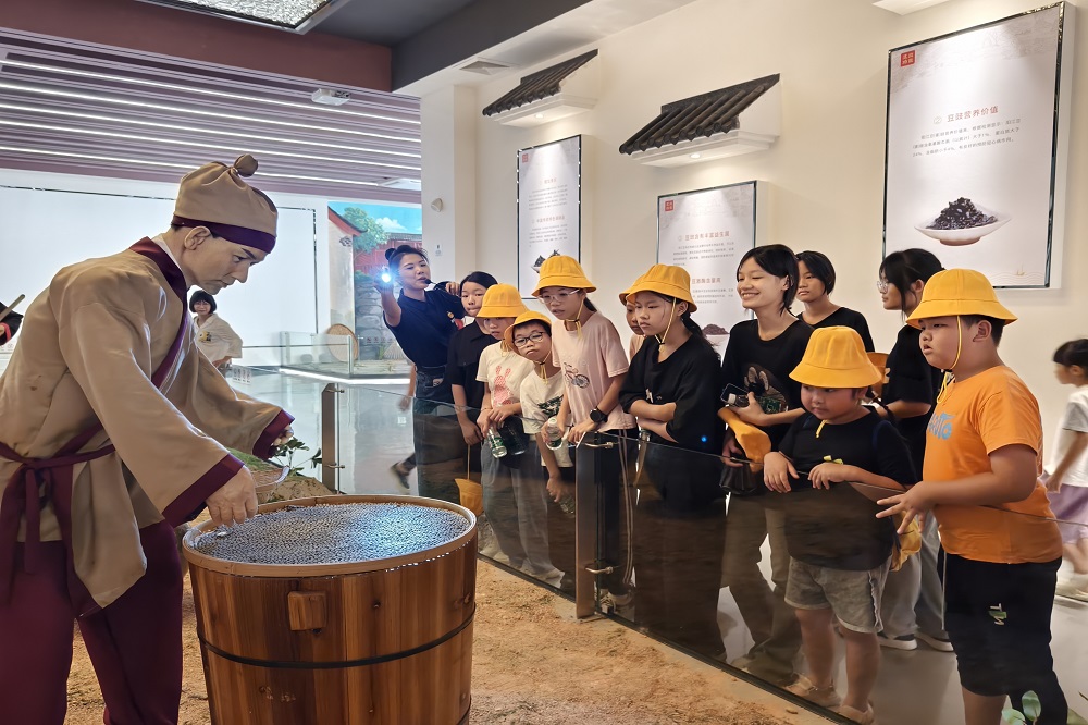 活動中,孩子們先后參觀了非遺館的展廳、制曲車間、封閉天然曬場等地。參觀過程中,講解老師以通俗易懂的語言詳細介紹了豆豉的發(fā)展歷程及制作流程,讓孩子們直觀地感受到豆豉文化的深厚底蘊。