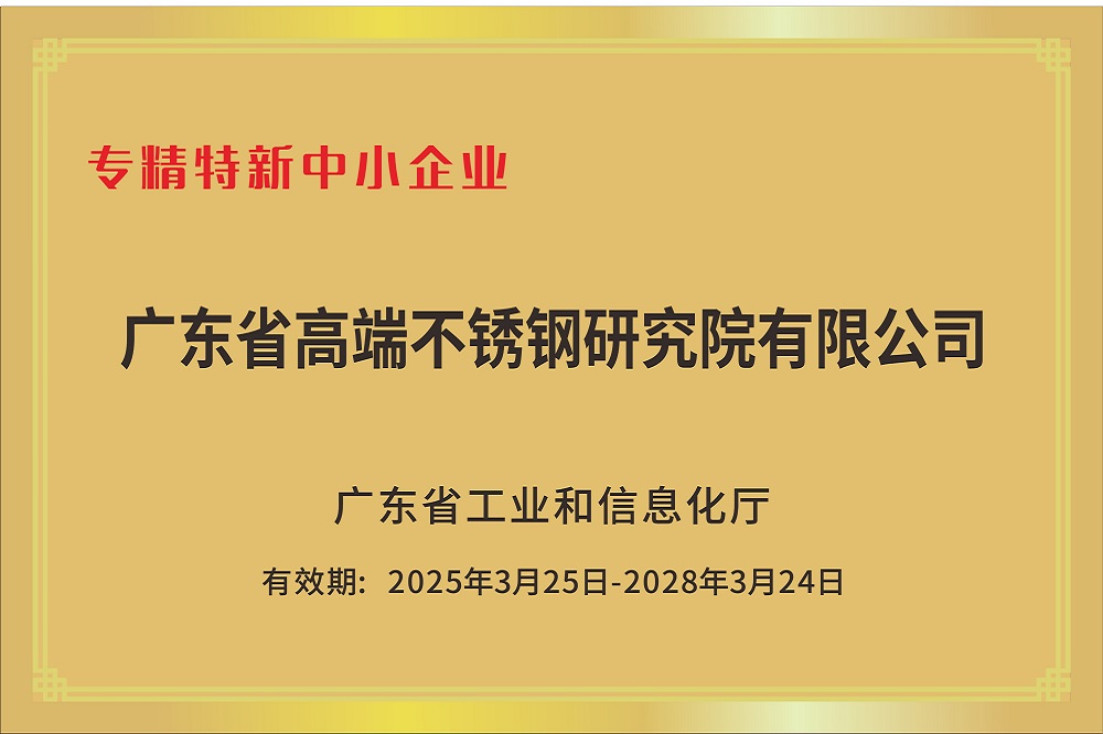 專精特新企業(yè)由廣東省工業(yè)和信息化廳組織認(rèn)定,是指專注于細(xì)分市場(chǎng),具備“專業(yè)化、精細(xì)化、特色化、新穎化”特征的中小型企業(yè),致力于開發(fā)新產(chǎn)品、新技術(shù)、新服務(wù),旨在通過技術(shù)創(chuàng)新和管理優(yōu)化提升產(chǎn)業(yè)鏈競(jìng)爭(zhēng)力,并在產(chǎn)業(yè)細(xì)分領(lǐng)域具有較高的專業(yè)水準(zhǔn)和獨(dú)特競(jìng)爭(zhēng)優(yōu)勢(shì)。此次入選是對(duì)公司研究院長(zhǎng)期堅(jiān)持專業(yè)化創(chuàng)新發(fā)展、深耕高端不銹鋼技術(shù)領(lǐng)域的有力認(rèn)可。