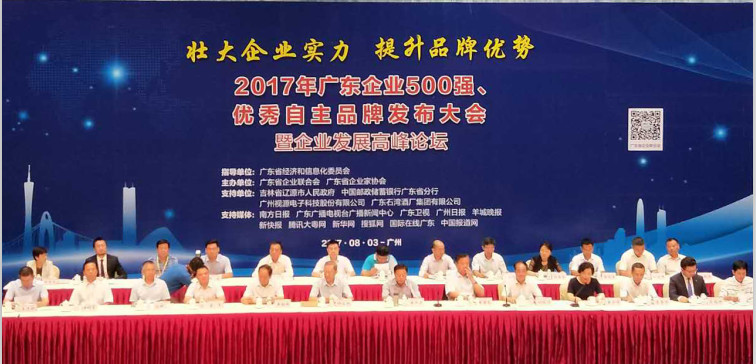 8月3日上午,2017年廣東企業(yè)500強(qiáng)、廣東省優(yōu)秀自主品牌發(fā)布大會暨企業(yè)發(fā)展高峰論壇在廣州白云國際會議中心舉行。全國人大常委、廣東省人民政府原省長黃華華,中國企業(yè)聯(lián)合會、中國企業(yè)家協(xié)會駐會副會長黃海嵩及省國資委、省商務(wù)廳等省直有關(guān)部門領(lǐng)導(dǎo)與來自全省各行業(yè)地區(qū)的500余名企業(yè)家代表共同出席大會。廣東廣青金屬科技有限公司副總經(jīng)理王磊代表公司出席了此次會議。