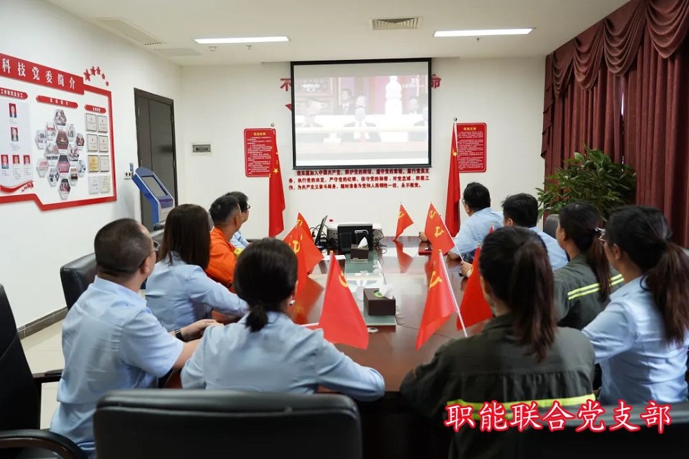 在辦公樓一樓會(huì)議室的主會(huì)場(chǎng),公司黨委委員和其他領(lǐng)導(dǎo)班子成員,與綜合部黨支部全體黨員一起,手持黨旗,集中觀看慶祝大會(huì),共同見(jiàn)證建黨100周年這一舉世矚目的歷史時(shí)刻。黨員、入黨積極分子及職工代表在廠部、車(chē)間的6個(gè)分會(huì)場(chǎng)集中收看大會(huì)直播實(shí)況。