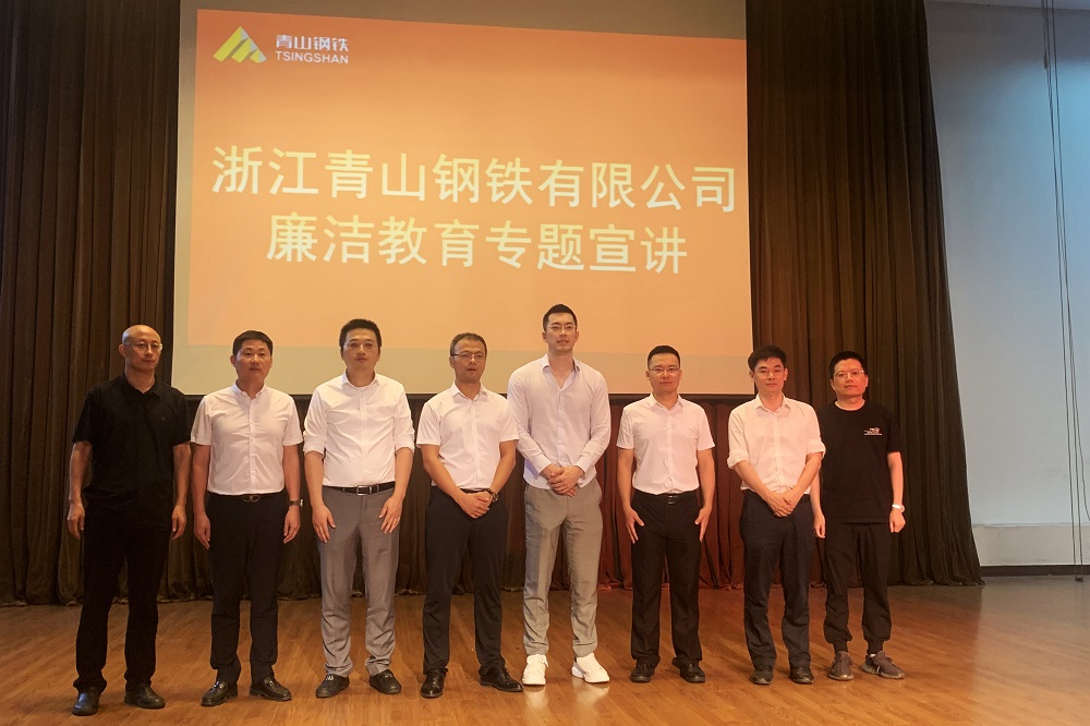 7月11日—12日,青山實(shí)業(yè)董事局監(jiān)察安全委員會廉潔監(jiān)察部總經(jīng)理翁時(shí)盼、常務(wù)副總經(jīng)理吳慶海、副總經(jīng)理?xiàng)顫恍械秸憬嗌戒撹F有限公司開展廉潔工作調(diào)研和宣講活動。