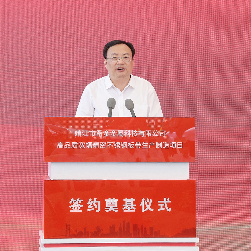 靖江市委常委、經(jīng)濟(jì)技術(shù)開發(fā)區(qū)黨工委副書記張勁松介紹了項(xiàng)目情況,他指出:靖江甬金項(xiàng)目總投資20億元,用地271畝,計(jì)劃建設(shè)年加工120萬(wàn)噸高品質(zhì)寬幅不銹鋼冷軋鋼帶生產(chǎn)基地;靖江開發(fā)區(qū)將以最大的誠(chéng)意盡最大的努力,以最優(yōu)質(zhì)的服務(wù)、最優(yōu)秀的政策、最優(yōu)良的環(huán)境助力項(xiàng)目高效的推進(jìn)、高標(biāo)準(zhǔn)建設(shè),真正讓企業(yè)投資放心、創(chuàng)業(yè)舒心、發(fā)展安心。