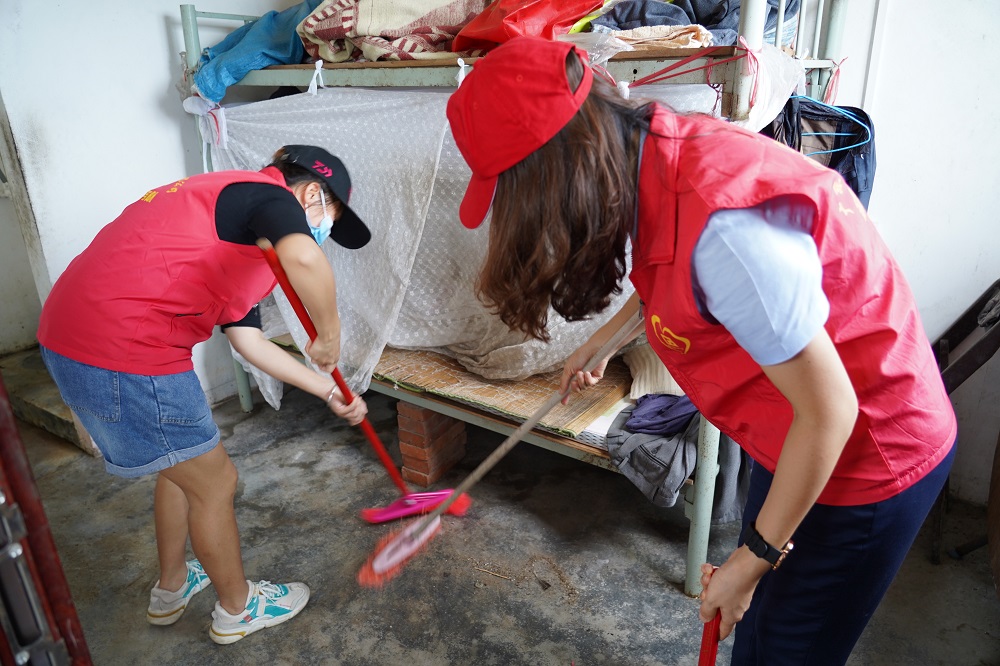 在北宿村,公司志愿者們看望慰問了四位五保人員,幫老人打掃屋內(nèi)衛(wèi)生,清除了門前雜草??吹阶约旱姆孔幼兊酶筛蓛魞?,老人露出了開心的笑容。