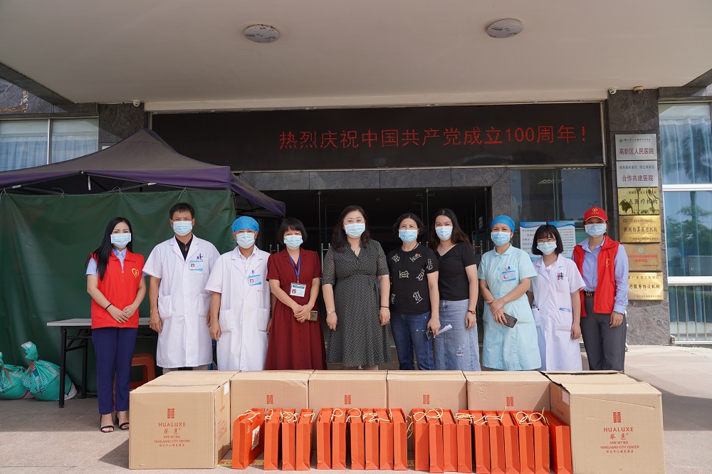 在陽江高新區(qū)人民醫(yī)院,慰問組與醫(yī)護(hù)人員進(jìn)行了親切交流,并代表公司向堅(jiān)守防疫一線的廣大醫(yī)護(hù)人員表達(dá)敬意,感謝他們一直以來對(duì)公司的支持和幫助。