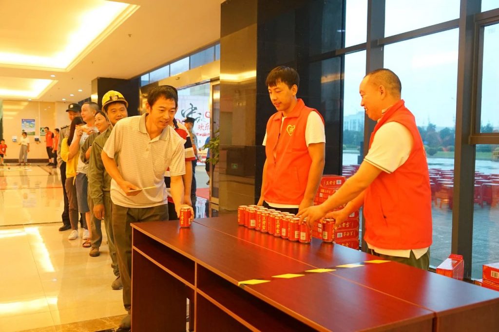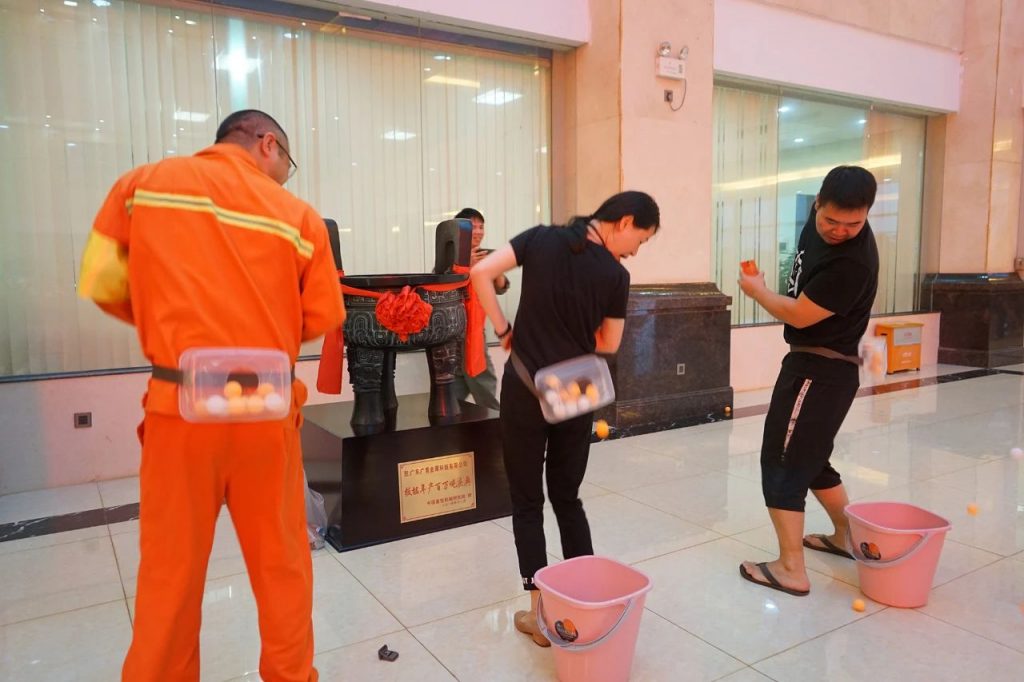 員工們自覺排起長龍,積極參與“手舞足蹈、圈套大象、母雞下蛋、沙包投擲、巧取飲料”等游戲,通過收集游戲券兌換到相關(guān)禮品。在“母雞下蛋”環(huán)節(jié),參與者將手背在身后,用膝蓋夾著乒乓球走到水桶旁,放松膝蓋將乒乓球放到水桶中,有趣的游戲設(shè)計(jì)深受員工歡迎。