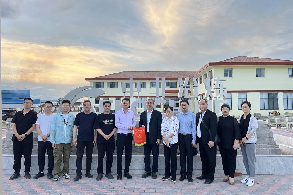 在新落成的中非冶煉辦公大樓前,張維仁向中非冶煉贈送了僑聯(lián)“中國夢,僑聯(lián)情”錦旗。