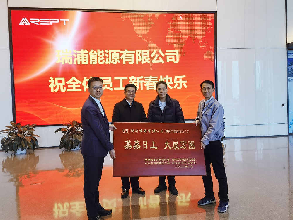為祝賀瑞浦能源2021年銷(xiāo)售產(chǎn)值超20億,周一富代表龍灣區(qū)委、區(qū)政府進(jìn)行了授牌儀式,并希望瑞浦能源在新的一年中頑強(qiáng)拼搏,再接再厲,實(shí)現(xiàn)“騰籠換鳥(niǎo)”,力爭(zhēng)2022年實(shí)現(xiàn)更高的目標(biāo)。