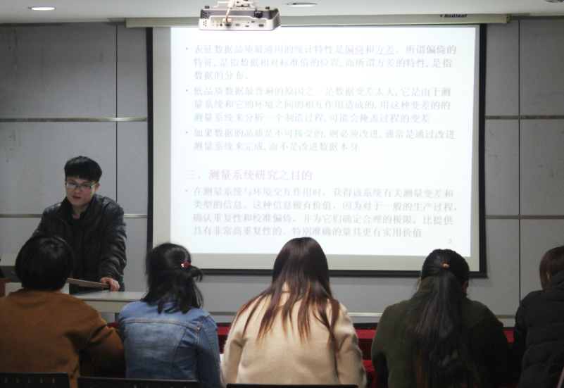 本次培訓(xùn)重點講解了測量數(shù)據(jù)品質(zhì)、測量術(shù)語、測量系統(tǒng)的統(tǒng)計特性、評價測量系統(tǒng)時需確定的基本問題、測量系統(tǒng)的分辨率、測量系統(tǒng)變差的類型、測量系統(tǒng)研究的準備工作、測量系統(tǒng)分析實施流程及測量系統(tǒng)研究的注意事項等方面的內(nèi)容。培訓(xùn)過程中大家對日常工作中遇到的測量數(shù)據(jù)偏差較大的案例進行探討,分析造成測量誤差的原因并尋求降低誤差的方法。