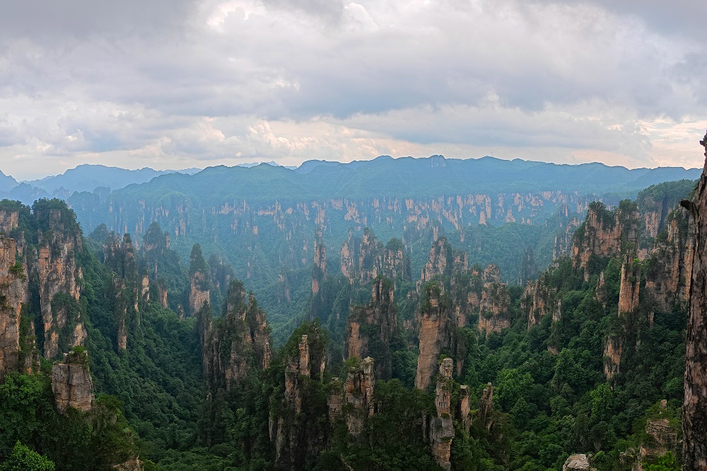 張家界國(guó)家森林公園,因其高聳入云的峰林、秀麗靈動(dòng)的水流、變幻莫測(cè)的溶洞和傳奇神山天門山,有“擴(kuò)大的盆景、縮小的仙山”之美稱。