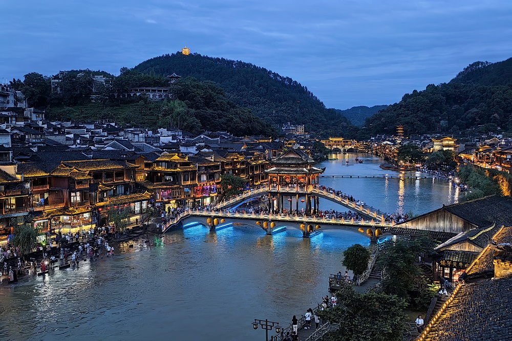 在鳳凰古城內(nèi)沿沱江兩岸漫步,欣賞悠悠沱江水,翩翩吊腳樓,一種遠(yuǎn)離塵囂的感覺油然而生。