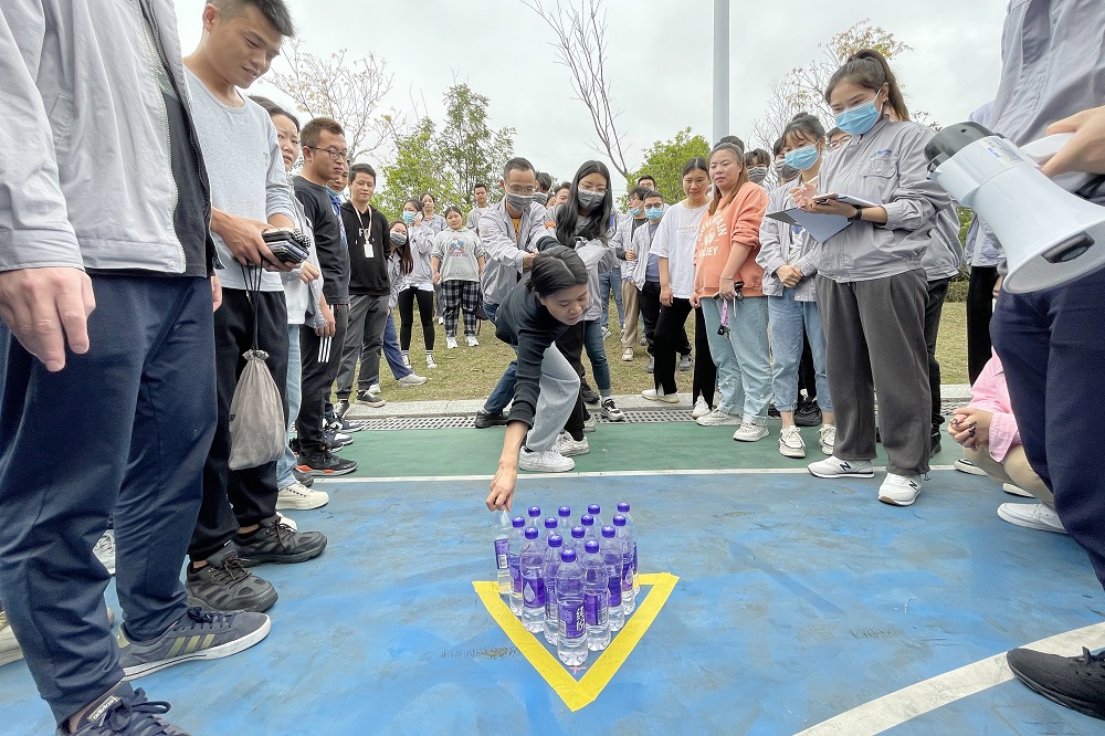 團體賽將娛樂融于運動,設(shè)立了立定跳遠+劈叉、8字跳大繩、一穿到底、雷區(qū)取水、筷夾乒乓球、五人六足、阻力傘接力賽、運水大作戰(zhàn)以及團體拔河九個比賽項目,不僅增強了員工的體能,更提升了大家的凝聚力和團隊意識。比賽中,各參賽隊伍合理安排,隊內(nèi)成員心往一處想,勁往一處使,齊心協(xié)力,共創(chuàng)佳績。最后,采購部、倉儲物流中心、質(zhì)量保障部、電極制造等部門在比賽中取得了不錯的成績。
