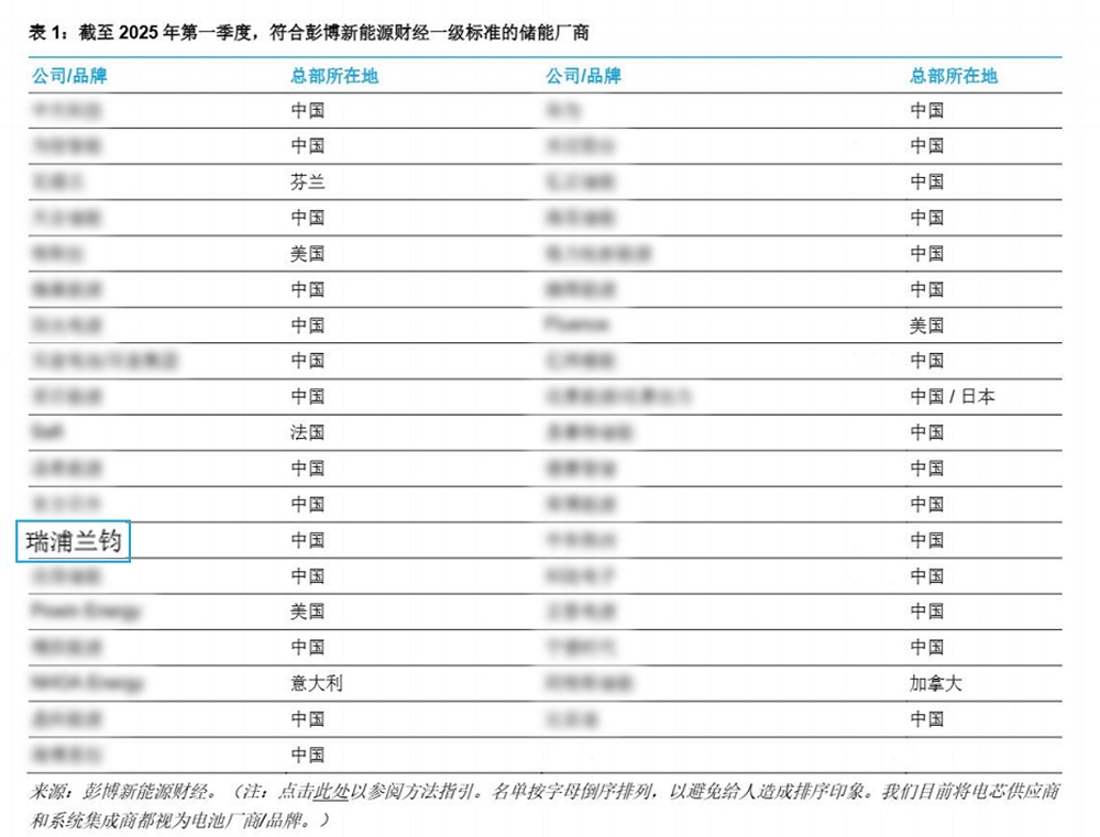 近日,瑞浦蘭鈞能源股份有限公司榮獲2025年彭博新能源財經(jīng)第一季度全球一級儲能廠商Tier 1稱號。
