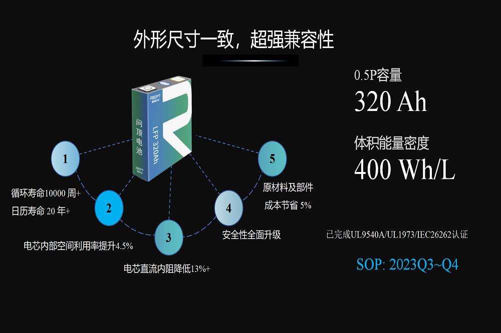 瑞浦蘭鈞副總裁侯敏在“高能問頂?創(chuàng)芯無限”發(fā)布會上,宣布320Ah和340Ah問頂電池儲能系列重磅首發(fā),實現(xiàn)尺寸全面兼容,并將于2023年Q3、Q4正式開售。在開啟問頂新時代后,基于問頂技術的產(chǎn)品系列不斷擴展,此次瑞浦蘭鈞攜問頂電池儲能系列的兩款電芯,以真正的“大容量”和超高循環(huán)壽命驚艷亮相。
