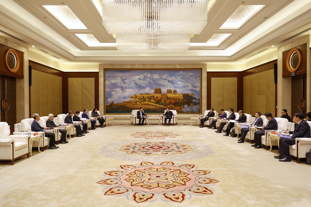 1月24日下午,甘肅省委書記、省人大常委會主任胡昌升,省委副書記、省長任振鶴等領導在蘭州會見了青山實業(yè)董事局主席項光達,華峰集團董事局主席尤小平,粵海集團黨委書記、董事長白濤,廣新集團黨委書記、董事長肖志平,廣汽集團黨委書記、董事長曾慶洪,越秀集團黨委書記、董事長張招興,永青科技集團董事長胡曉東一行。