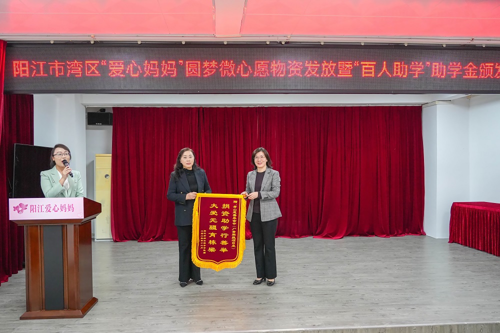 12月10日,陽江市灣區(qū)“愛心媽媽”圓夢微心愿物資發(fā)放暨“百人助學(xué)”助學(xué)金頒發(fā)儀式在婦女兒童活動中心舉辦,廣東廣青金屬科技有限公司黨委副書記、工會主席王大慶出席儀式并代表青山慈善基金會為陽江“百人助學(xué)”活動捐贈助學(xué)金。