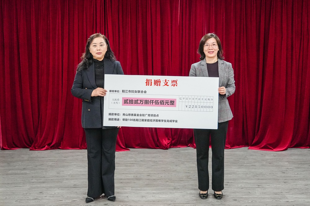 陽江“百人助學(xué)”計(jì)劃是青慈會聯(lián)合廣青科技以及陽江市婦聯(lián)等有關(guān)部門在當(dāng)?shù)亻_展的幫助家庭困難學(xué)生完成學(xué)業(yè)的慈善項(xiàng)目,2023年已在陽江濱海新區(qū)(陽江高新區(qū))首次組織開展,為當(dāng)?shù)匕倜麑W(xué)生提供了21.55萬元的資助,這次再度捐資22.85萬元幫助陽江100名學(xué)子完成學(xué)業(yè),進(jìn)一步傳遞企業(yè)的責(zé)任擔(dān)當(dāng)和對困難學(xué)子的關(guān)心關(guān)愛,為“百千萬工程”添磚加瓦。
